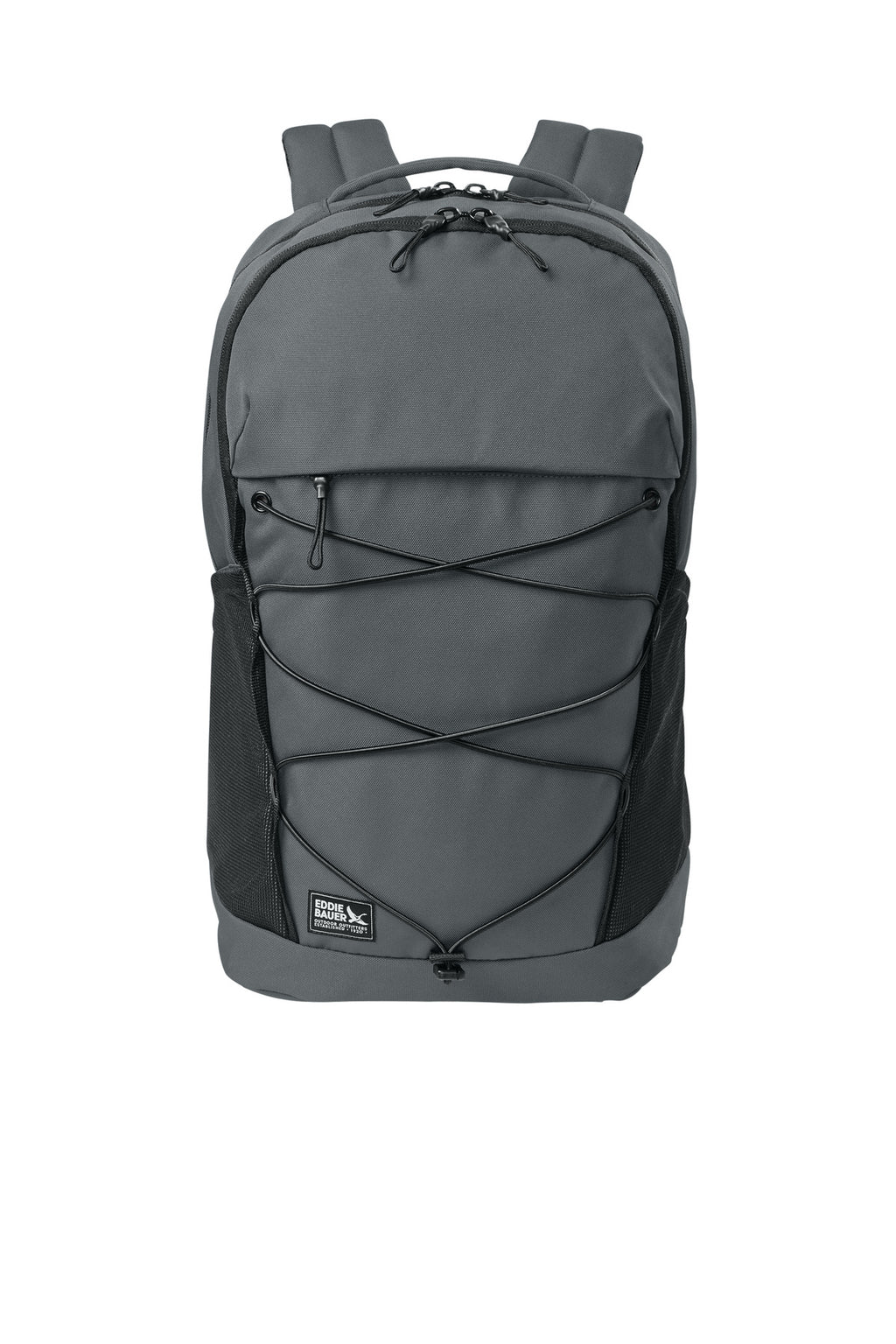 Designed for a comfortable carry and built with functionality in mind, this pack stands ready for any urban or trail adventure. 900D polyester Spacious zippered main compartment with laptop sleeve Interior zippered mesh pockets Zippered office compartment Adjustable bungee strapping across center front Zippered top pocket with decoration access Generous elasticized side mesh pockets Padded top haul handle Padded air mesh back with trolley pass through Padded ergonomic shoulder straps with adjustable sternum strap Corded zipper pulls Woven Eddie Bauer logo patch label on lower left side Laptop sleeve dimensions: 14.25'h x 11.125'w; fits most 17' laptops Dimensions: 18'h x 10.25'w x 8.25'd Capacity: 1,342 cu. in./22 L Weight: 1.7 lbs./0.8 kg Note: Bags not intended for use by children 12 and under.